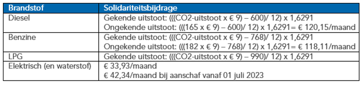 De solidariteitsbijdrage wordt bepaald door de CO2-uitstoot van de wagen en het type brandstof.