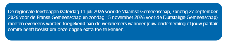 Opgelet: wanneer een feestdag op een zondag valt, moet altijd een vervangingsdag worden voorzien.